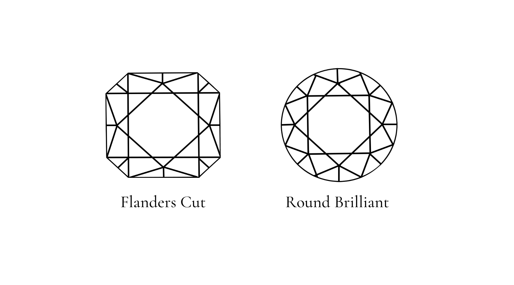 Basically the Flanders cut has same number of facet as normal round brilliant cut and same way of cutting. It means that the Flanders cut is the “ Squared “ brilliant cut.