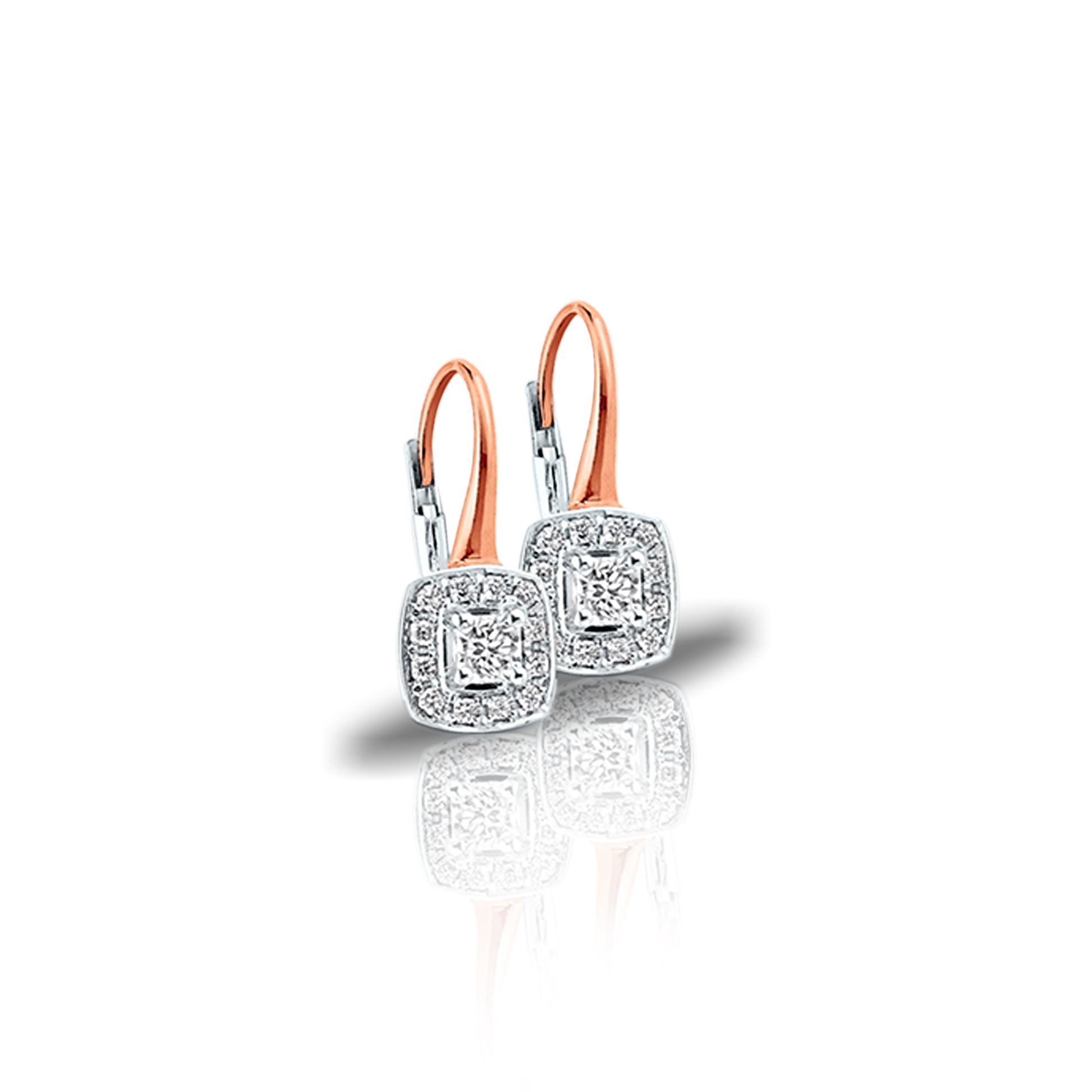 Indulge in the perfect harmony of 18K white and rose gold with our stunning drop earrings, showcasing Flanders Cut diamonds surrounded by a halo of brilliance. Crafted for elegance and refinement, these luxurious earrings make a statement for any occasion. Explore unparalleled beauty today