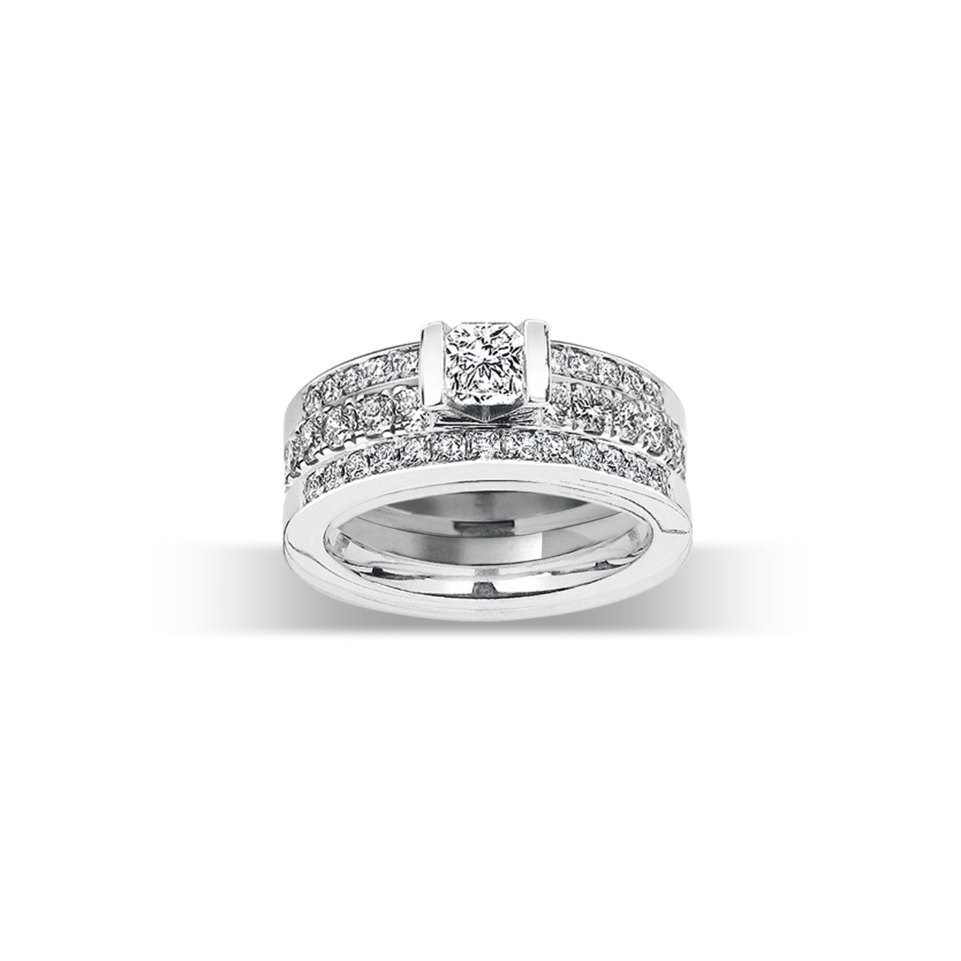 Flanders Love Double Band in 18K Gold Full Eternity Diamonds Bar Ring